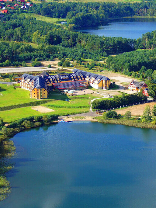 Możemy pochwalić się bazą ponad 400 miejsc noclegowych, rozmieszczonych w blisko 130 komfortowo wyposażonych pokojach. Unikalnym atutem jest własne jezioro z ogrodzoną plażą i wypożyczalnią sprzętu wodnego.